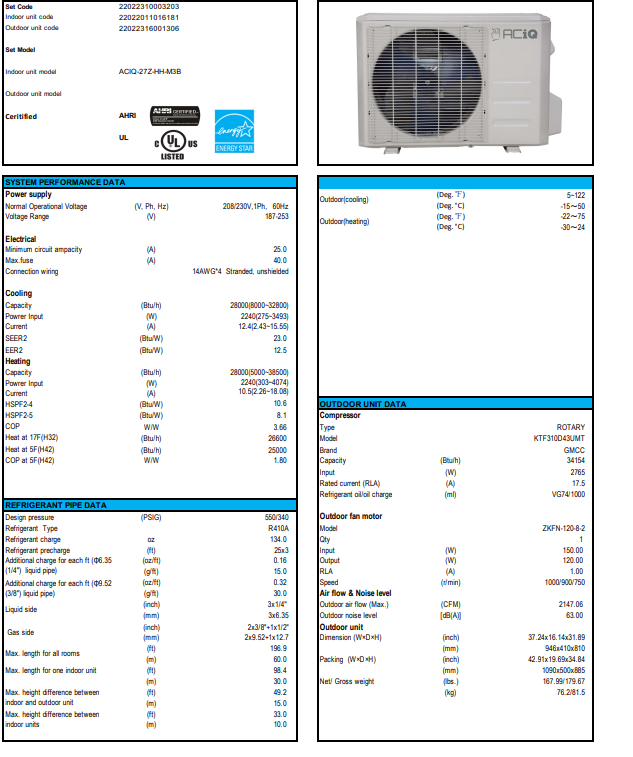 ACiQ’s multi zone mini split systems are designed to give you intelligent technology and superior comfort, all at a reasonable cost. With the ACiQ IntelliHeat multi zone series you get higher SEER and better low ambient (hyper heat) performance than the competition.