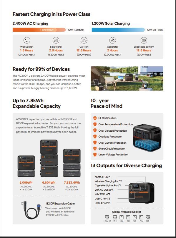 BLUETTI AC200P-L Portable Power Station 2400W Premium Series