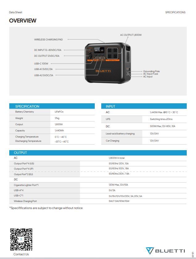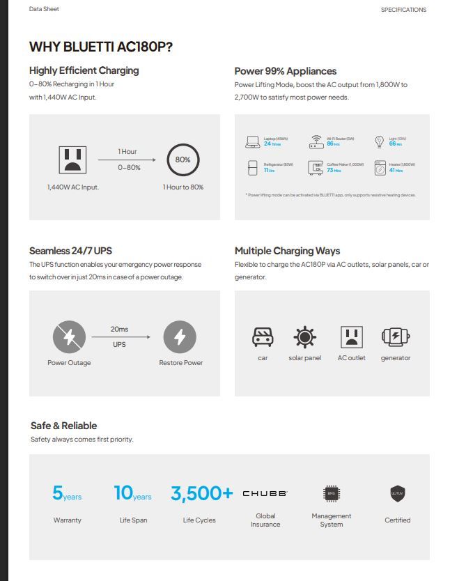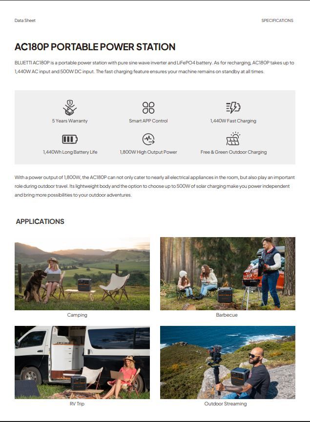 Bluetti Premium AC180P Portable Power Station 1800w/1440wH